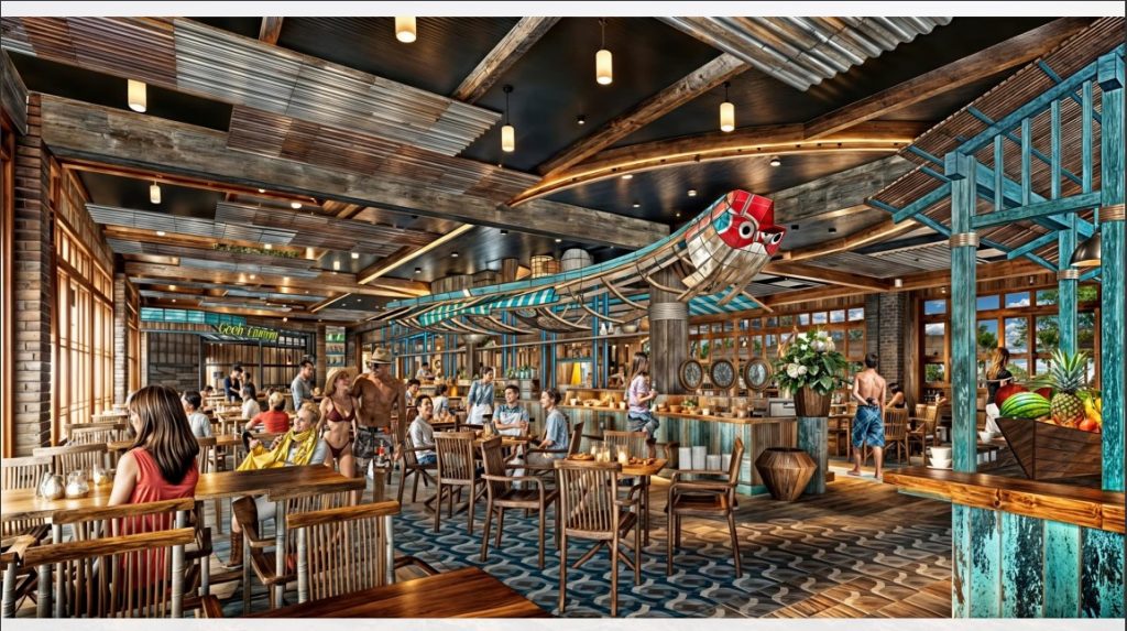 Cụm giải trí – ẩm thực – thương mại ven biển hoạt động 24/7: Nhà hàng ẩm thực, club view biển, tuyến phố đi bộ thương mại hoạt động suốt ngày đêm – nơi nhịp sống hiện đại giao thoa cùng thiên nhiên.